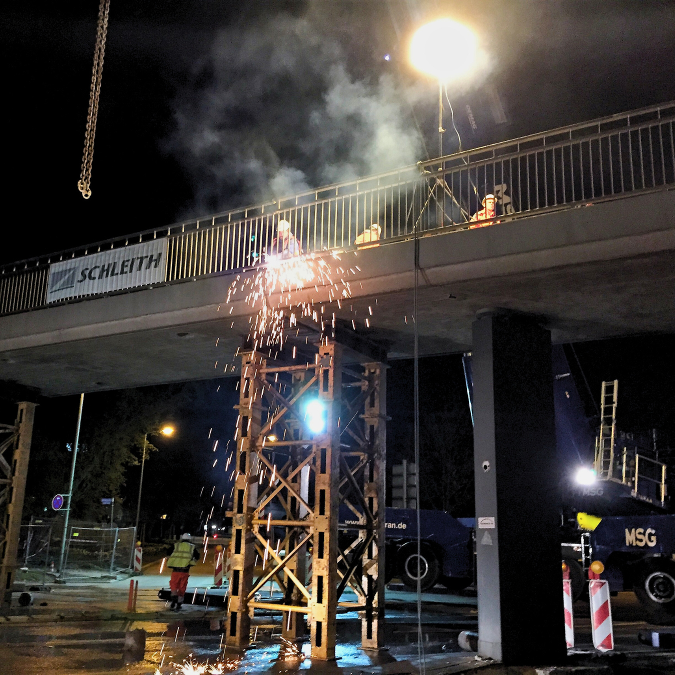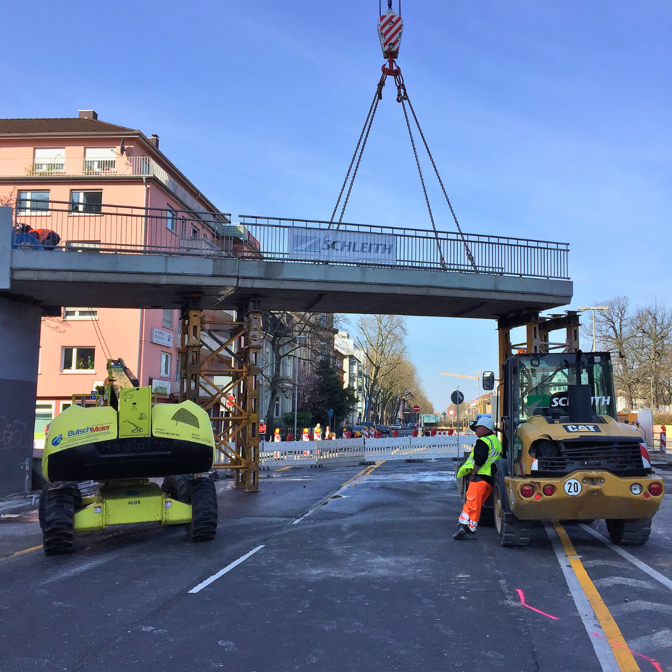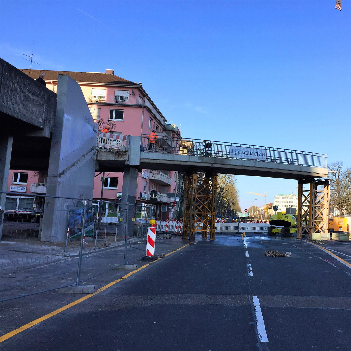 Im Anschluss an dieses Teilprojekt betreute die KMS Bauüberwachung GmbH den Rückbau der Fußgängerbrücke in der Ritterstraße. Hierbei wurde die Fußgängerbrücke Ritterstraße mit Rampe und Treppe auf der Nordseite, sowie die Treppe auf der Südseite zurückgebaut. Im Anschluss fand ein Einbau einer provisorischen Stützkonstruktion und eines Absturzgeländers an der Rampe Südseite statt. Die KMS Bauüberwachung GmbH stellte bei diesem Teilprojekt ebenfalls die Bauoberleitung, die örtliche Bauüberwachung und den SiGeKo.